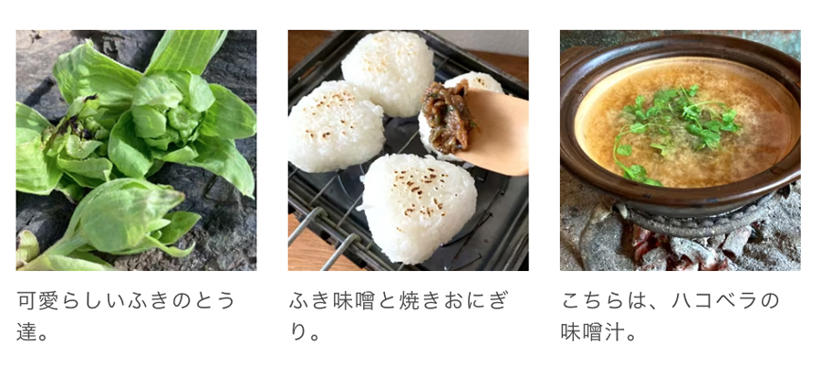 アトリエの庭に春を告げるふきのとう。 摘んだら軽く湯がいて刻み、味噌と砂糖を混ぜるだけ!焼きおにぎりに付けて頂きます。ほろ苦さが最高です。
